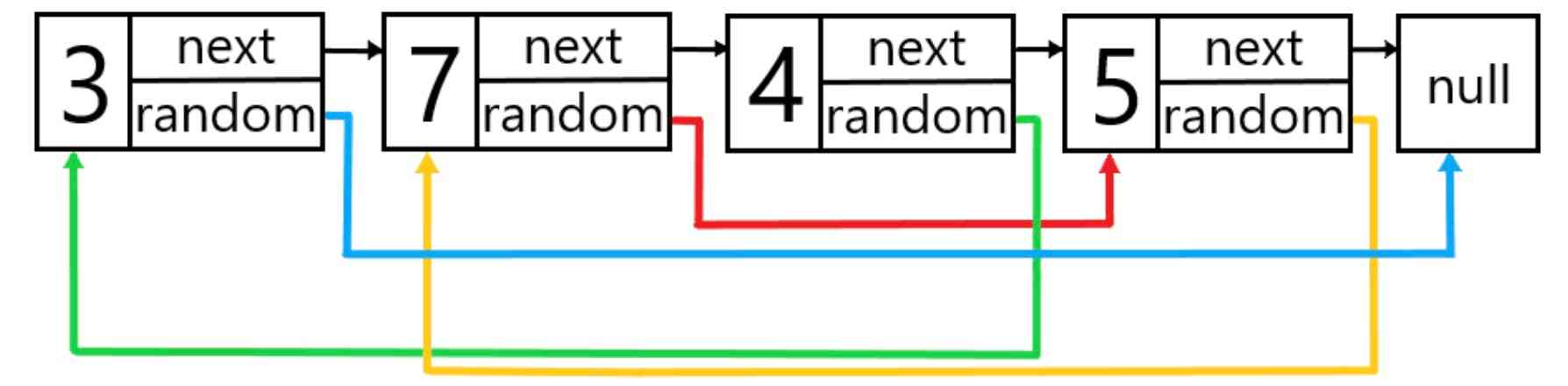 長さnのリンクリストの先頭を与えられます。 片方向リストとは異なり、ランダムリンクを持ちます。 ランダムリンクはどのノードにもリンクでき、あるいはnullにリンクします。
