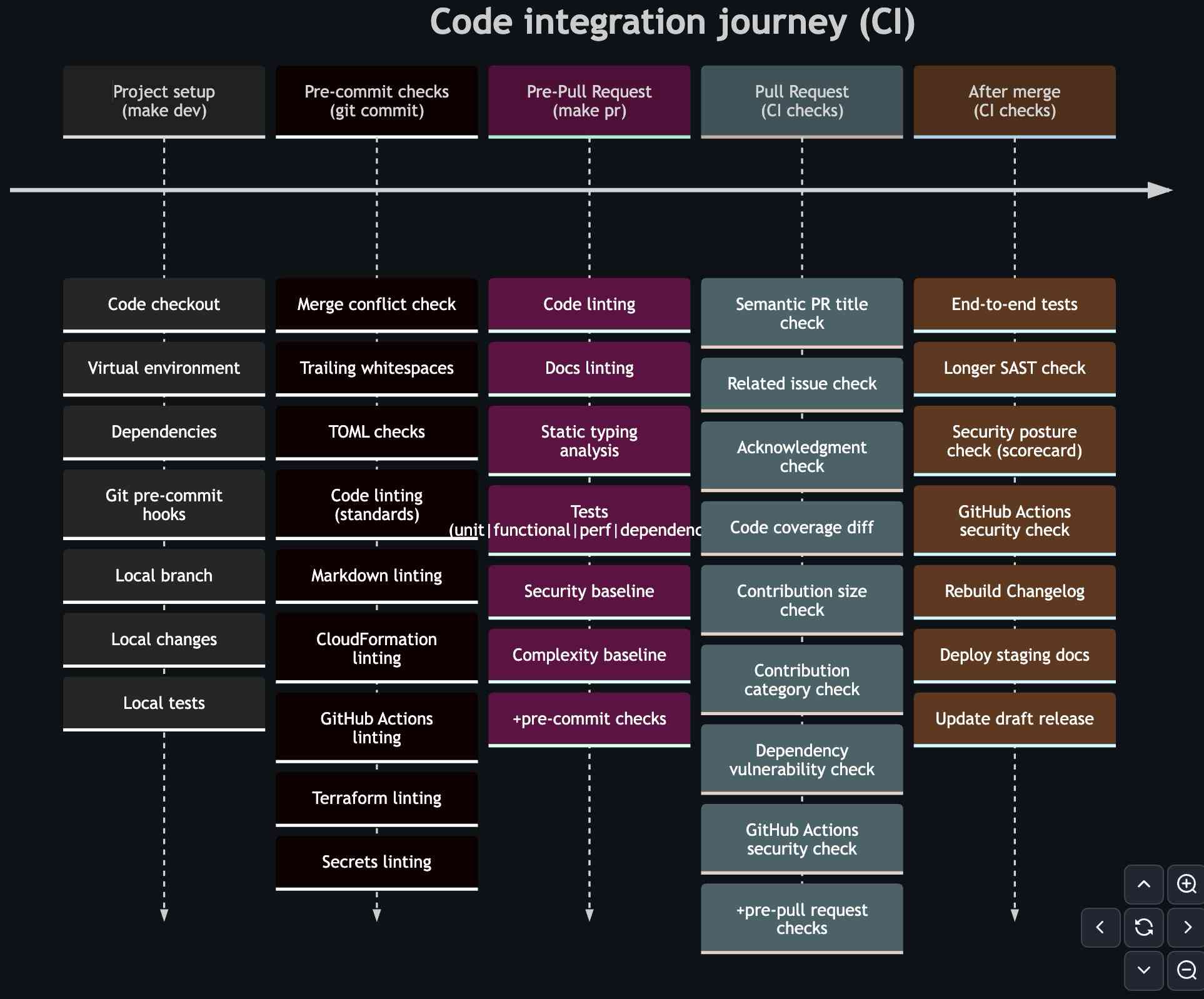 大まかに言うとレポジトリにマージされるステップは以下です。全てのステップは自動化される予定です。