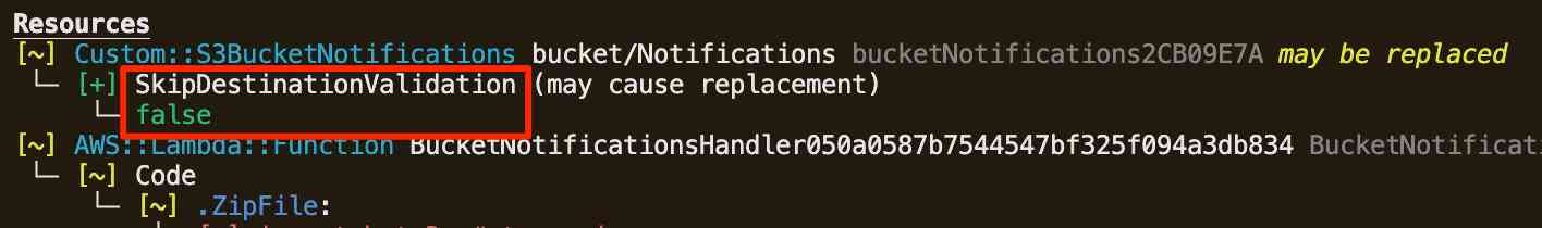 [~] Custom::S3BucketNotifications bucket/Notifications bucketNotifications2CB09E7A may be replaced