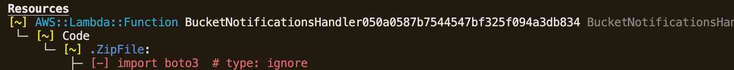 [~] AWS::Lambda::Function BucketNotificationsHandler050a0587b7544547bf325f094a3db834 BucketNotificationsHandler050a0587b7544547bf325f094a3db8347ECC3691