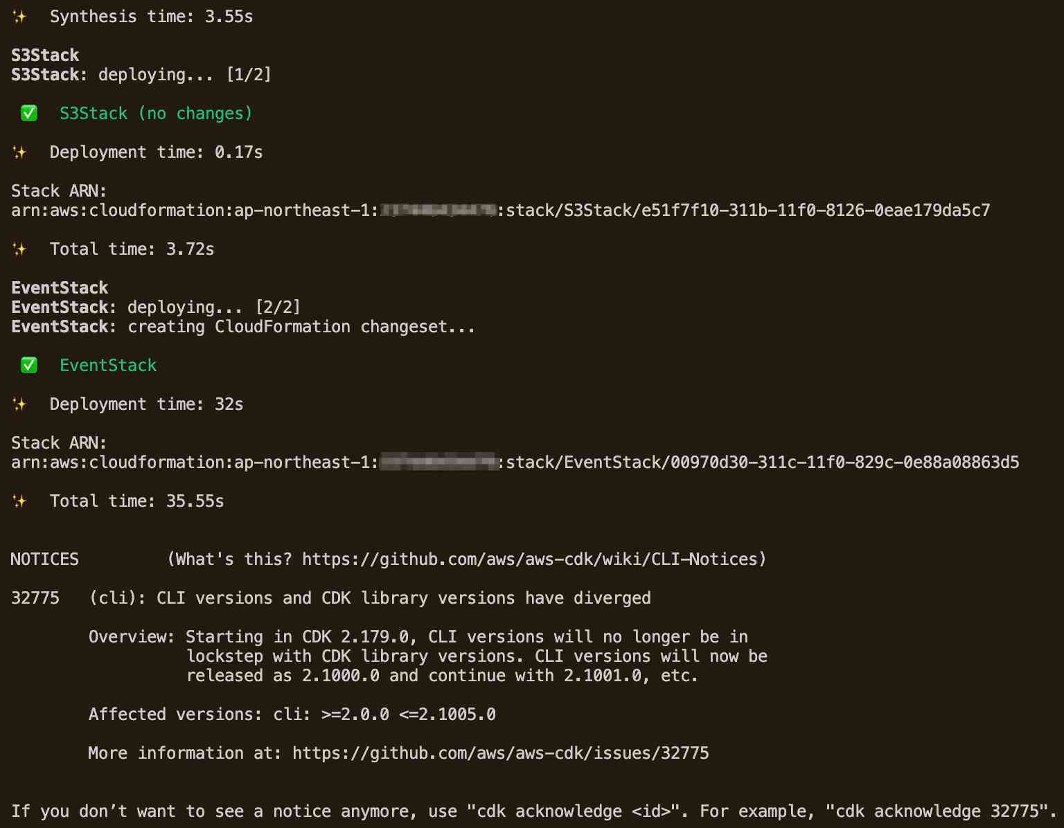 NOTICES (What’s this? https://github.com/aws/aws-cdk/wiki/CLI-Notices)