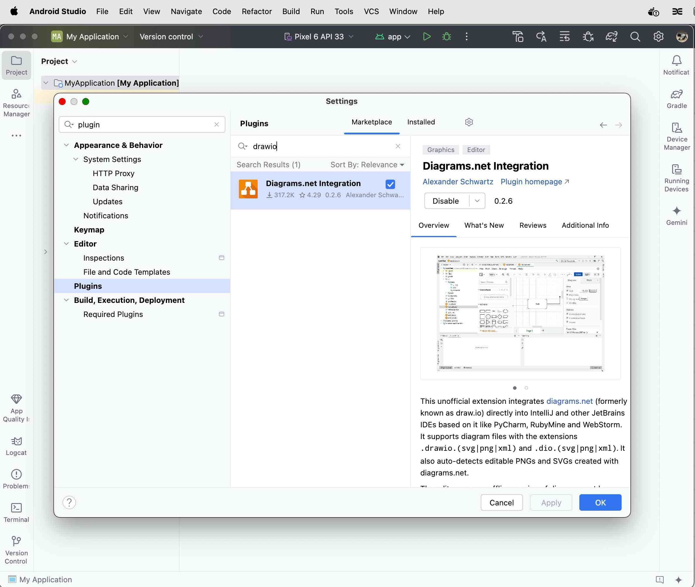 Android StudioでDrawioを使いたいんだけど、Visual Studio Codeと違ってすごく面倒だった。