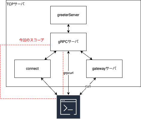 connect-goで複数のgPRC実装と簡単に接続できます。grpc-goはconnect-goサーバーと連携して動きます。この前までは全てBuf CLIで実施していました。 - gRPC-Webプロトコル。grpc/grpc-web によって使用されます。これにより