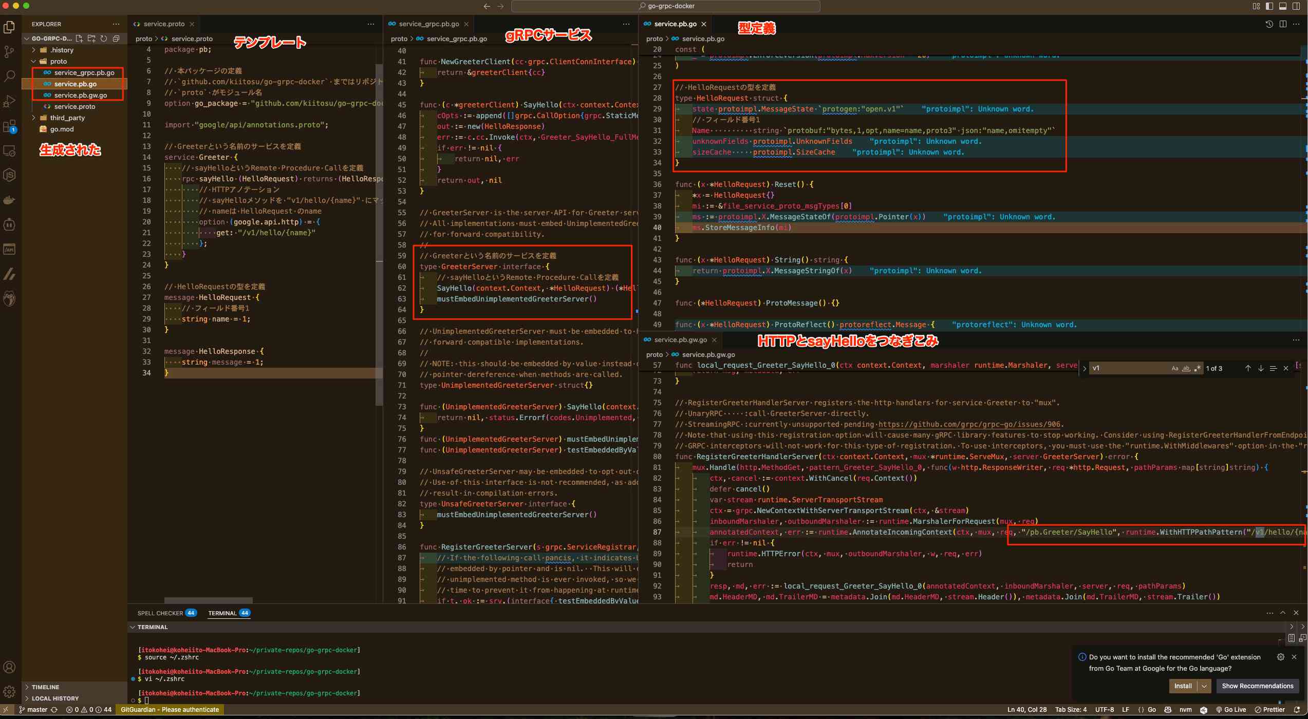 - Protocol Bufferを使ったgRPCサービスを定義できました