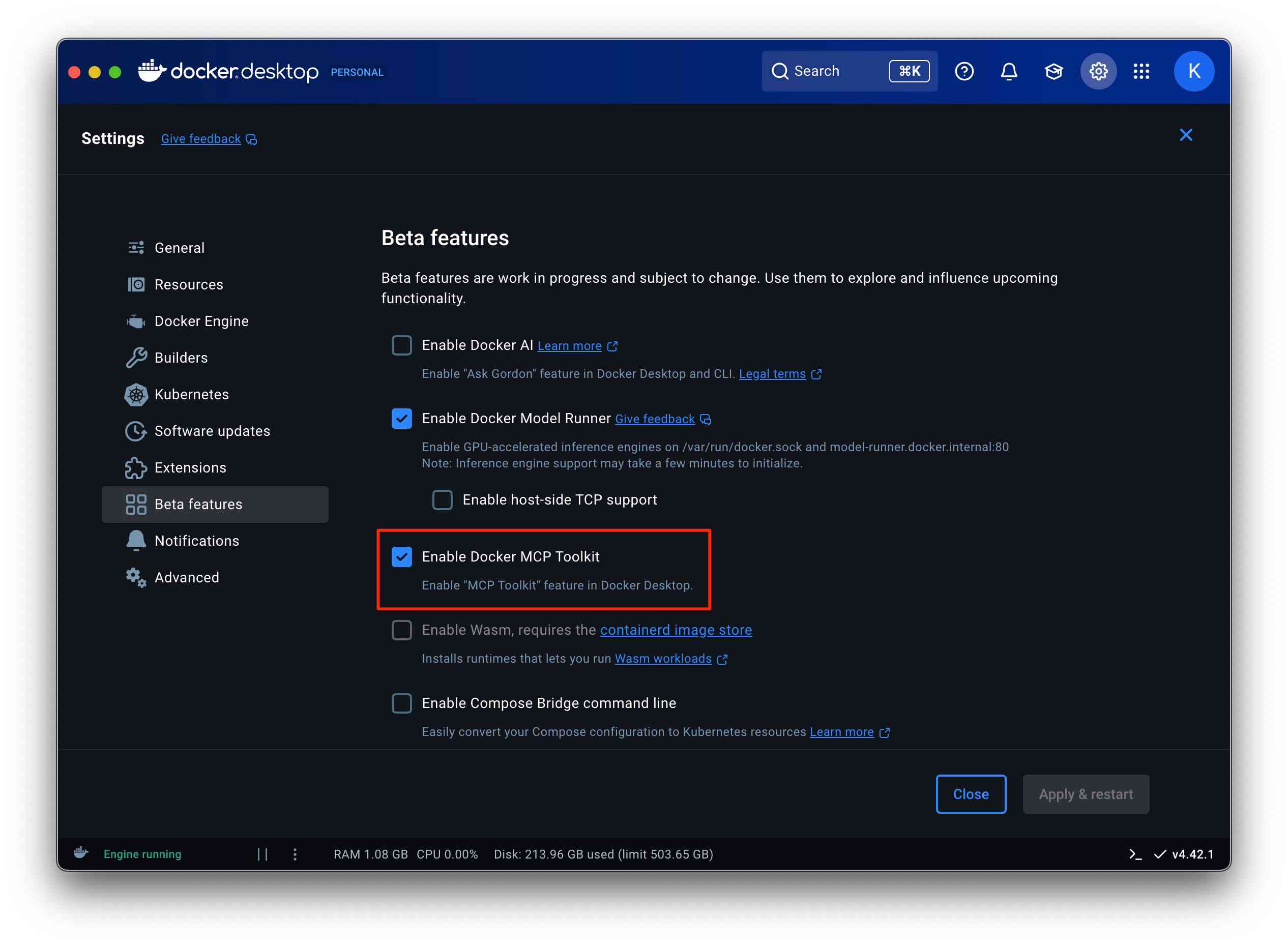 Docker MCP Toolkitを有効化する #