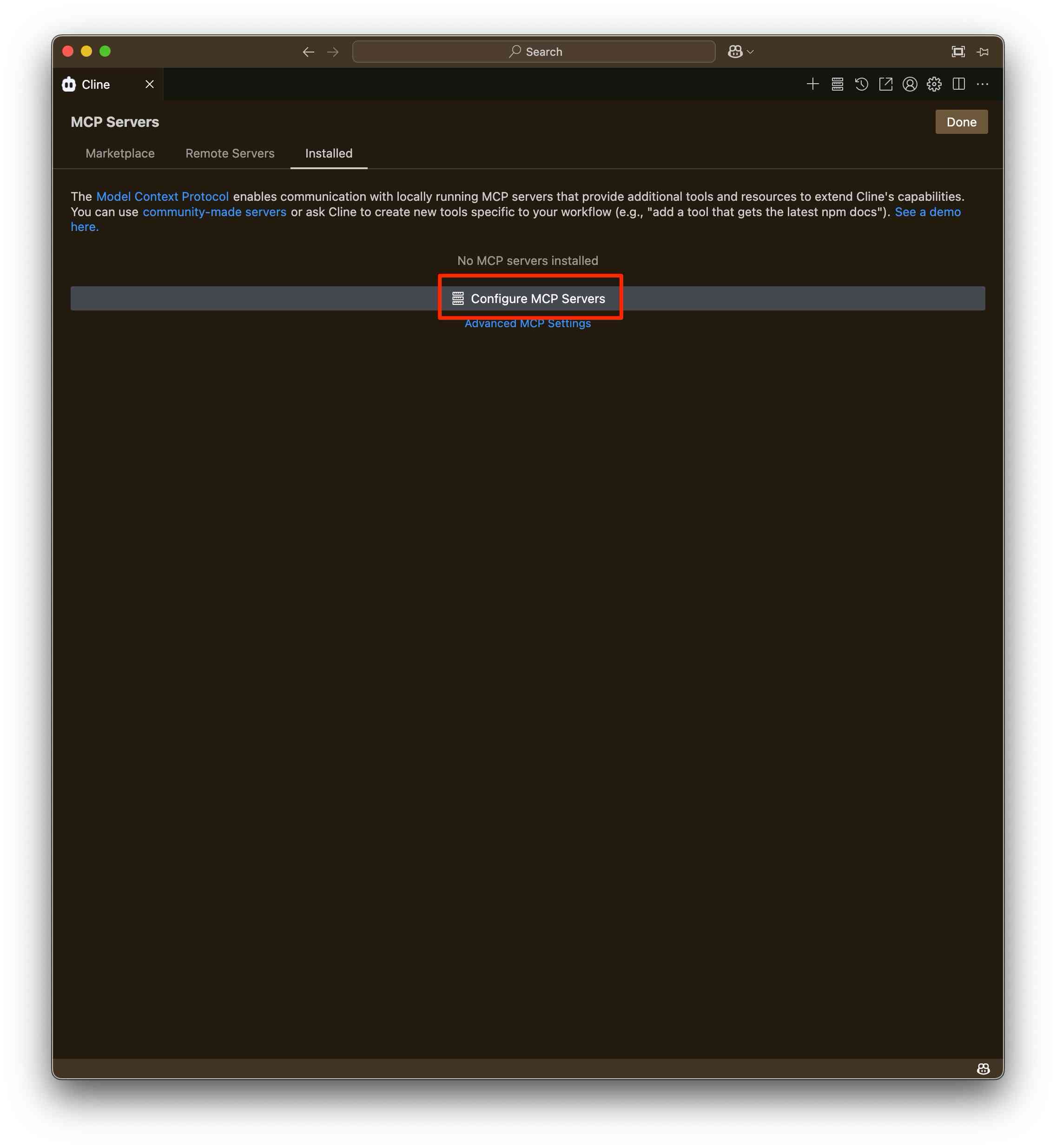 - MCPサーバーを選択し Plus アイコンを選択します。