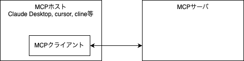 ざっくりと、MCPホスト、MCPホストに内包され使用されるMCPクライアント、MCPクライアントと直接やりとりするMCPサーバ の3つの役割があるようです。