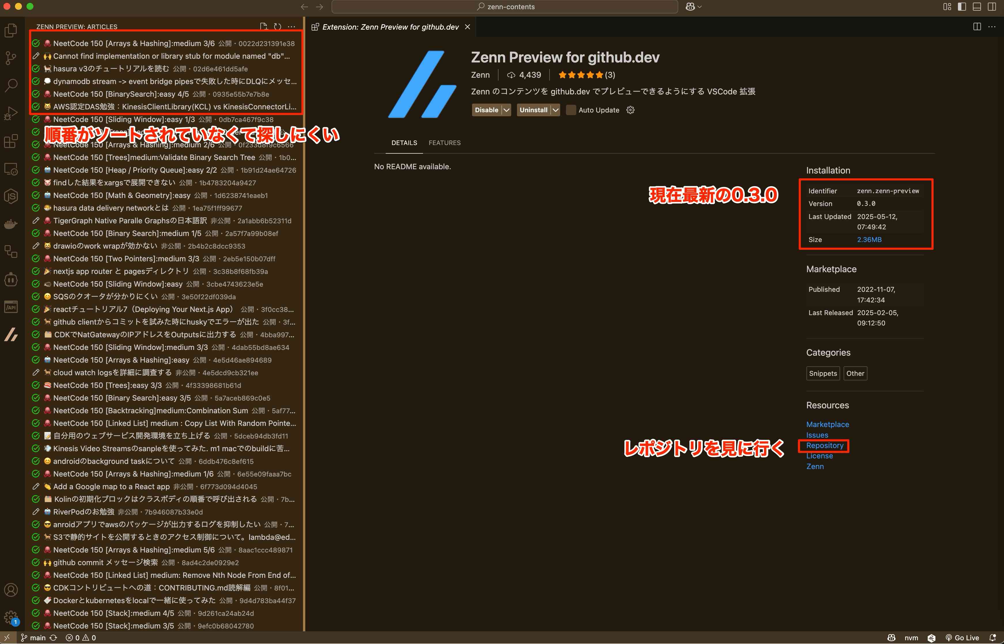 Zenn PreviewというVSCode拡張を使わせてもらっているが、記事一覧がソートされておらず、探すのが大変. 今回は記事一覧をソートする機能を追加してPRを出してみようと思う。