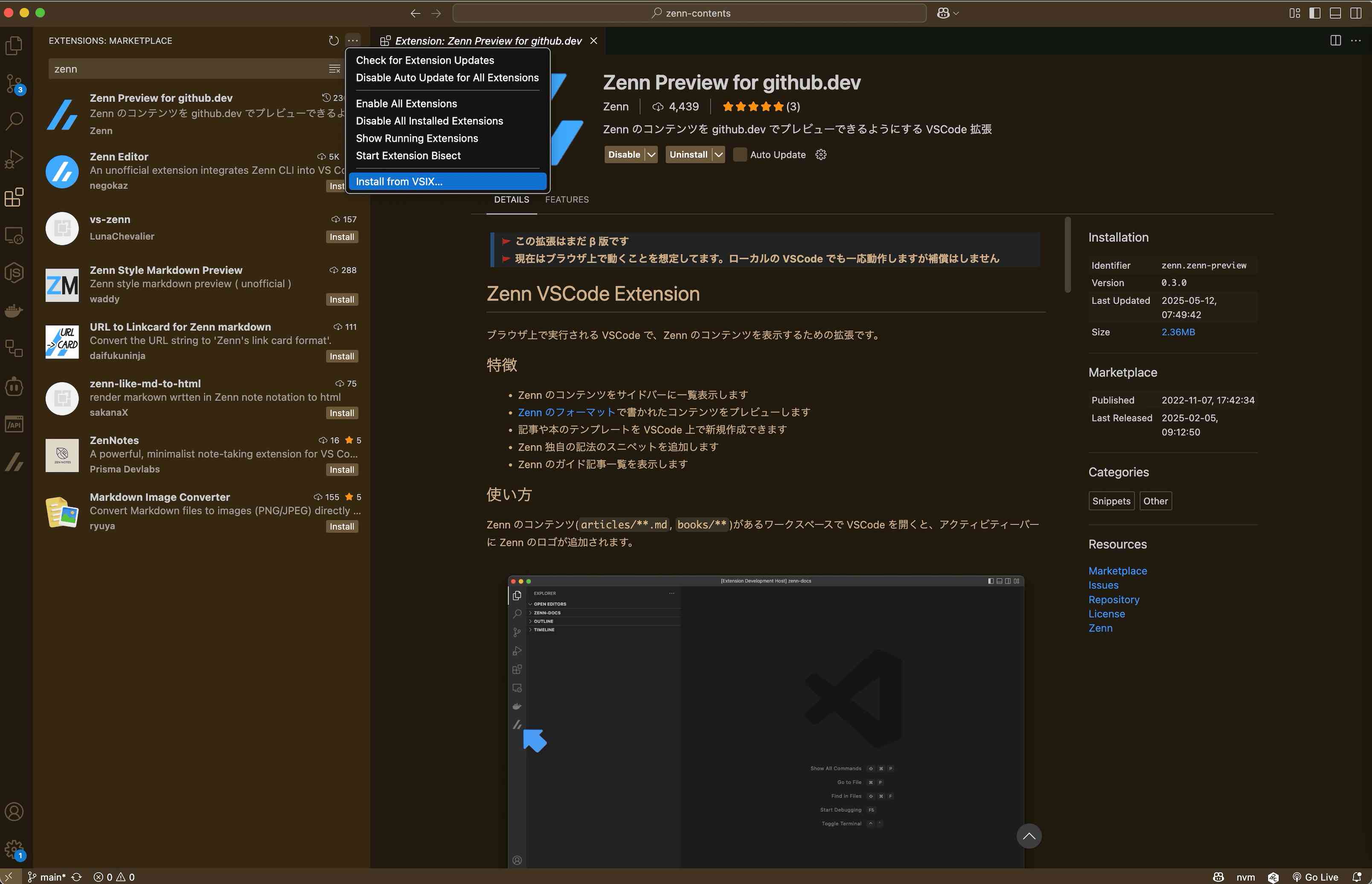 $ rm -rf ~/.vscode/extensions/zenn.zenn-preview-0.3.0