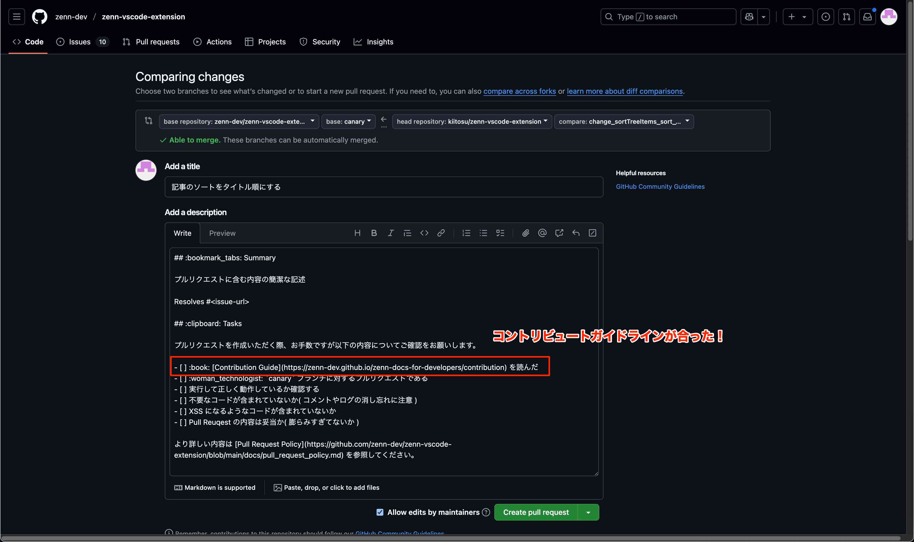 とここまで来て衝撃の事実! コントリビュートガイドラインがあった! リポジトリ単体ではなく、zenn関連の開発全てのガイドラインがあるみたい。
