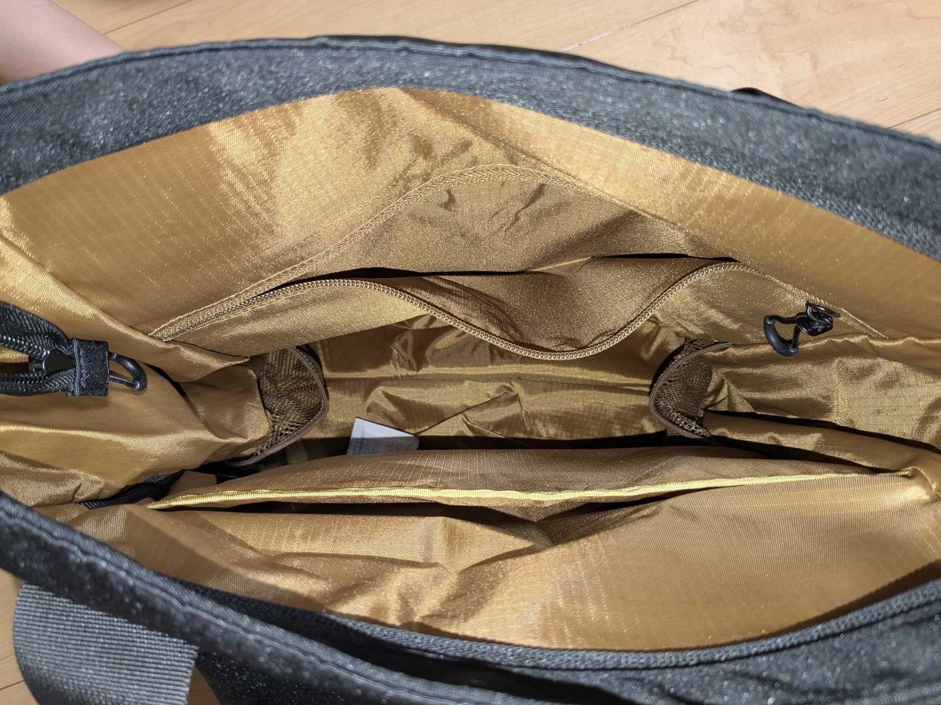 右側にメインポケットにサイドからアクセスできるチャックがあります。