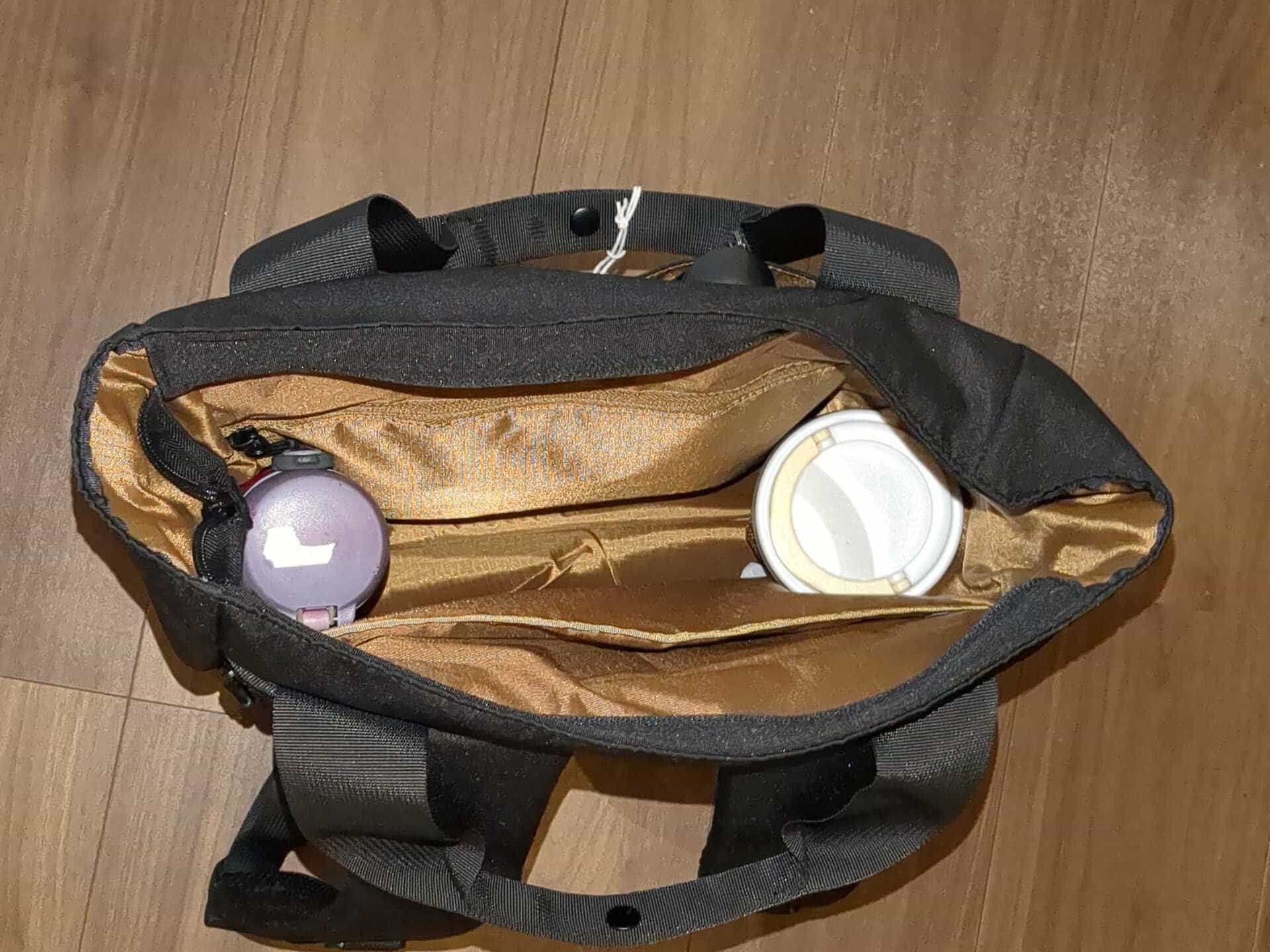 左側に小さめのポケットがあります。こちらはメインポケットとは隔離されています。財布など防犯性の高いものをいれるのでしょうか。それにしては少し小さいので財布を選びそうです。