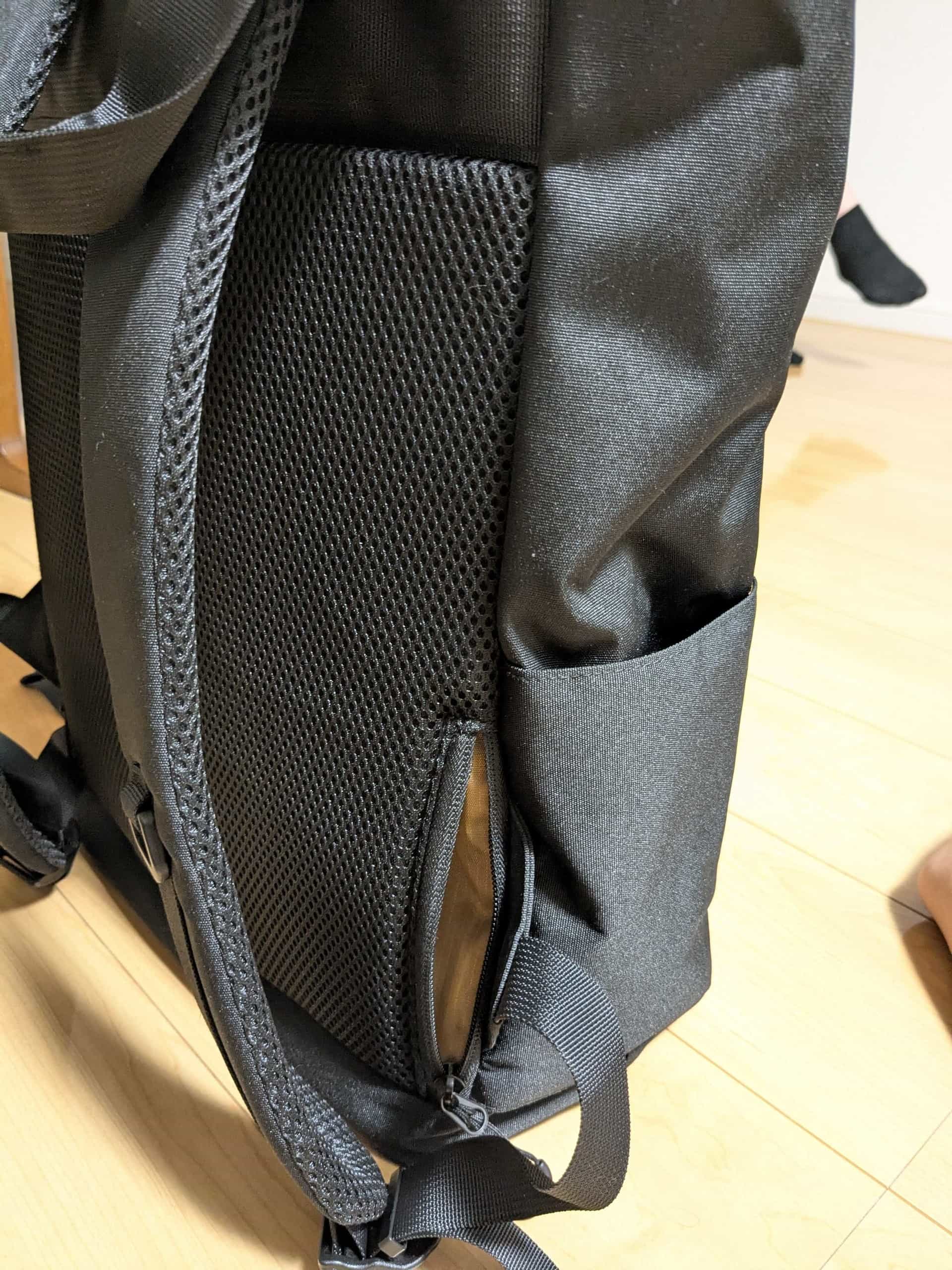 - 左右にはペットボトルポケットがあります。